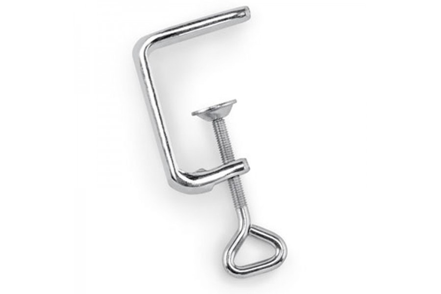 Струбцина гвинтова для кріплення ручного верстата з металу на столі.